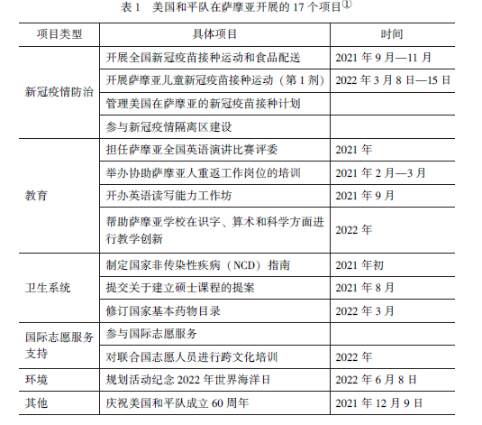 支持了萨摩亚进一步实现其发展目标。总之, 和平队为了加强美国与太平
